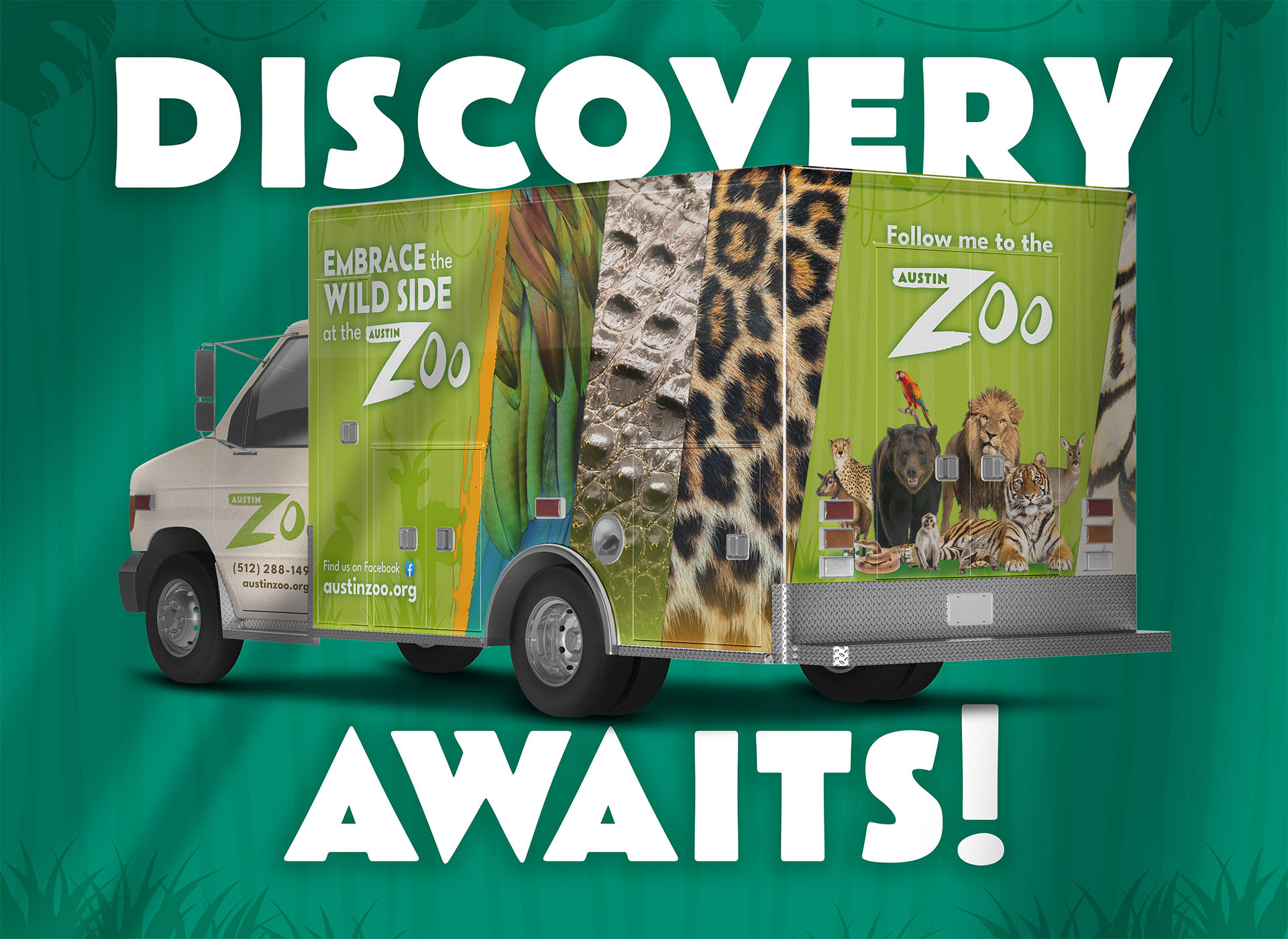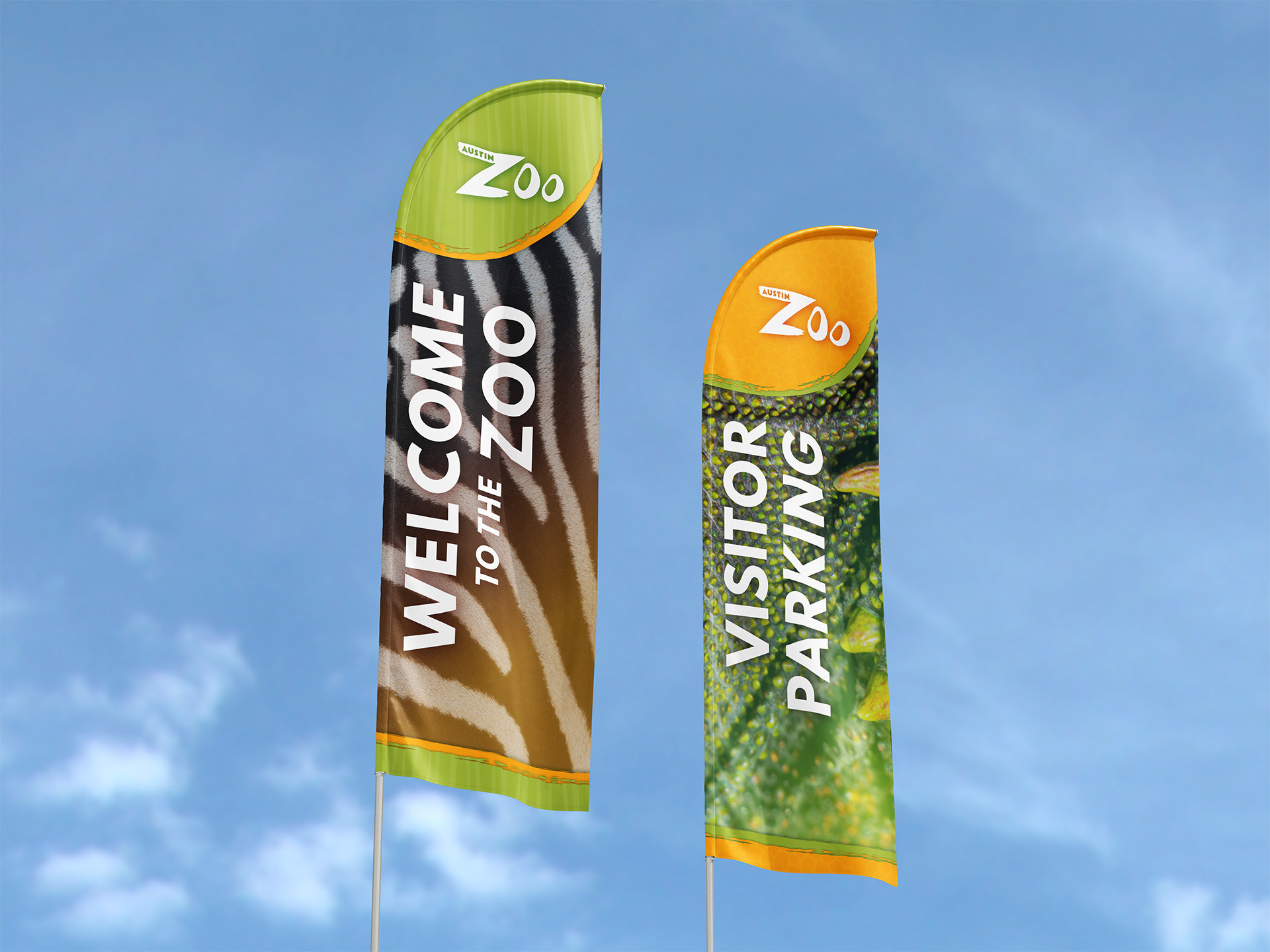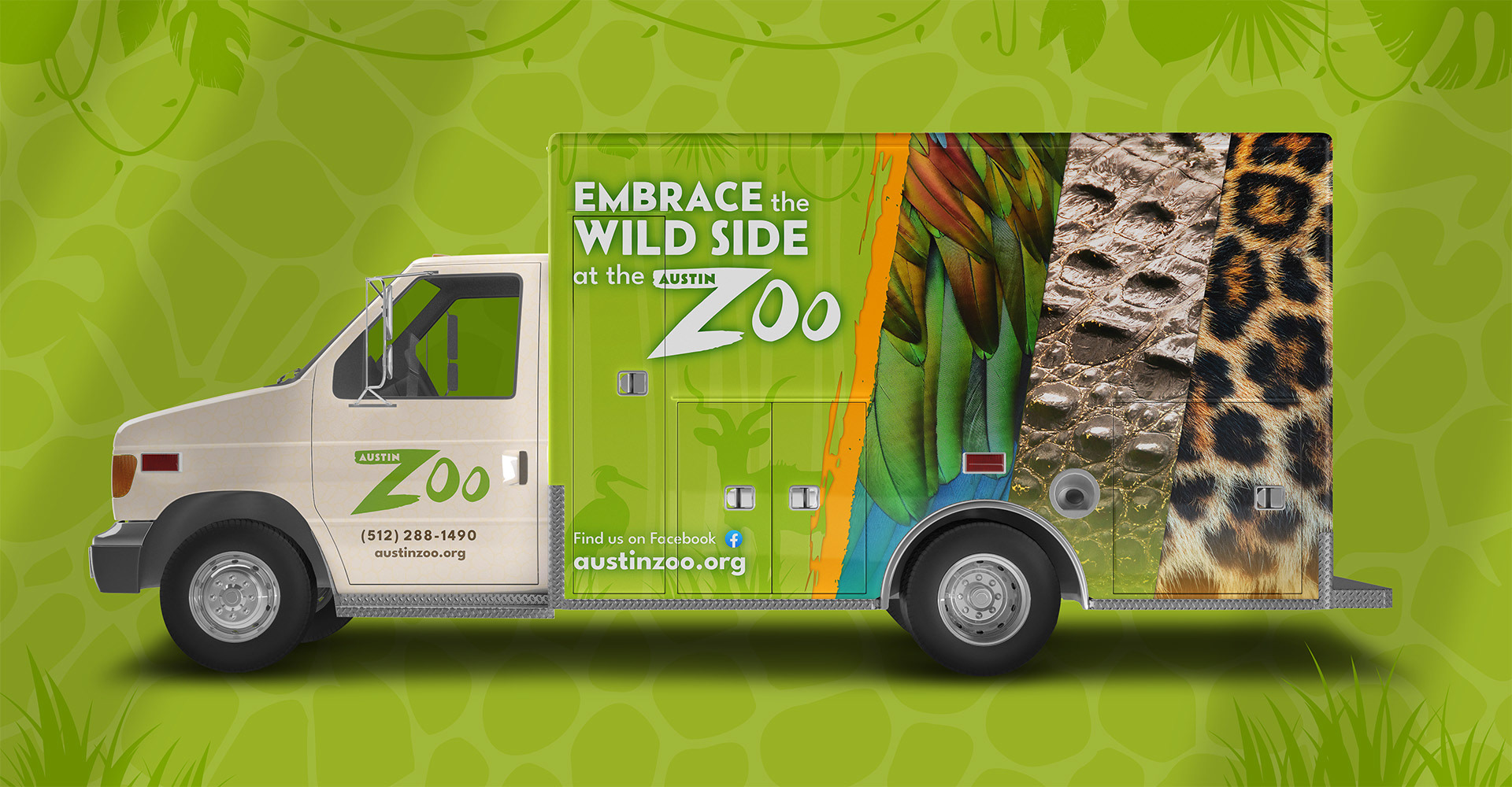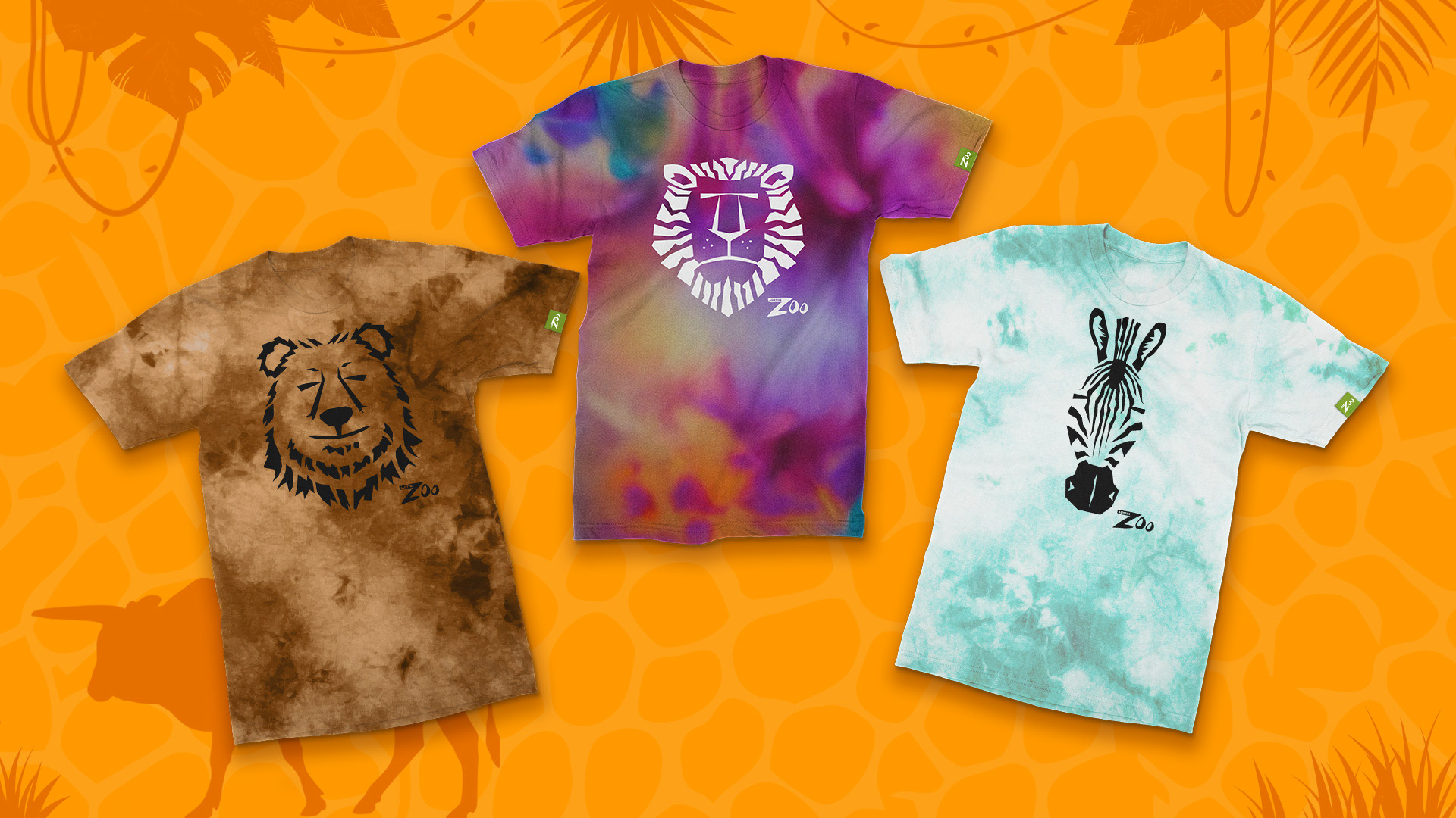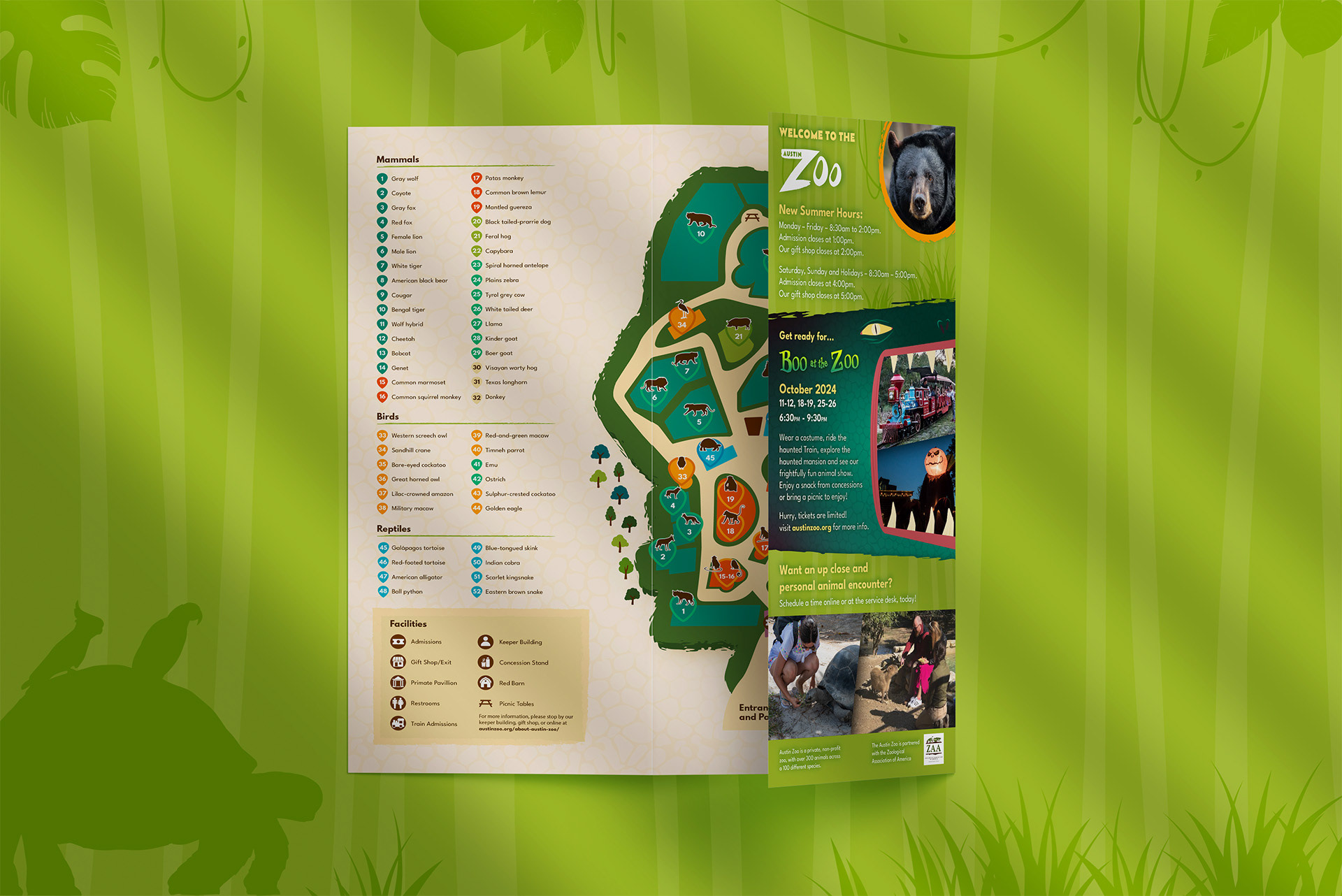 Since the zoo doesn't have a cohesive brand, I wanted to bring their presence forward with simple patterns, textures, vibrant energetic colors, and photos highlighting the natural and recognizable beauty of pelts, hides, and feathers in our natural world.