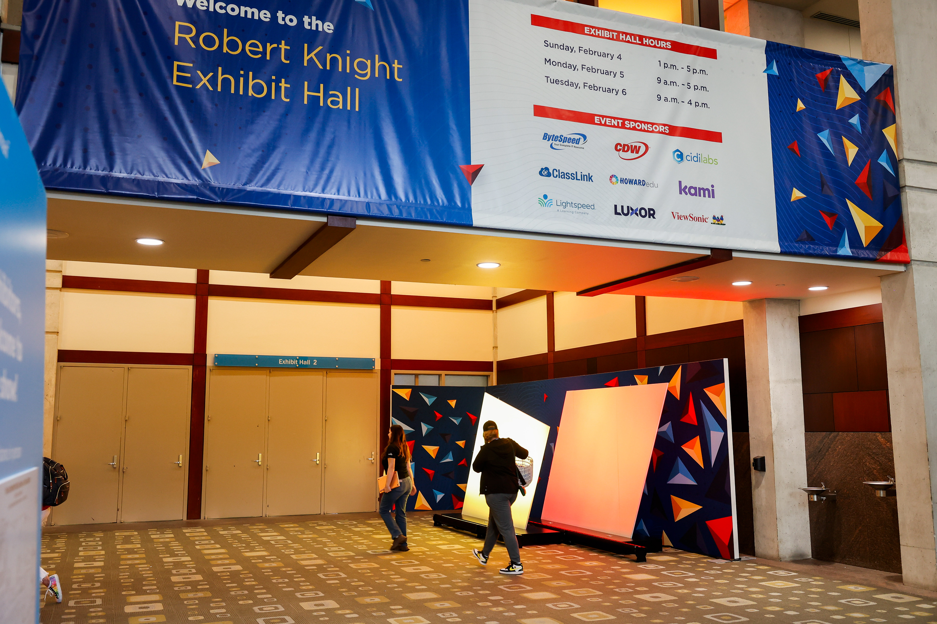 This was one of a few animated IMAG screens for featured presenters during the convention. This looping video would play in the background while presenters would speak on stage about a variety of topics regarding educational technology, and topics regarding teaching as a whole.